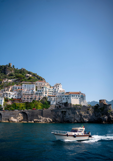 Da Amalfi a Praiano, esplorerai spiagge nascoste e archi rocciosi, passando per la romantica Grotta di Sant’Andrea e l’Arco degli Innamorati. Attraverserai la Conca dei Marini per ammirare Villa Sophia Loren e il suggestivo Hotel Il Saraceno.