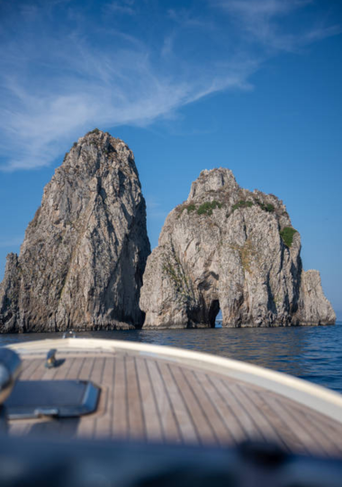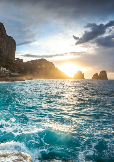 Durante la navigazione raggiungerai i maestosi Faraglioni, che al tramonto offrono uno scenario davvero speciale. A bordo ti attende un aperitivo con prodotti tipici campani, ideale per accompagnare la tua esperienza in totale relax.