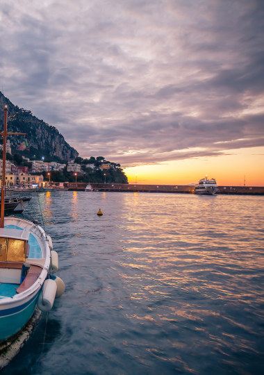 Dal porto di Capri salperai per un tour di due ore pensato per farti vivere l’isola nel momento più suggestivo della giornata: il tramonto. Mentre il sole cala e il cielo si colora di tinte calde, potrai ammirare Capri da una prospettiva unica.